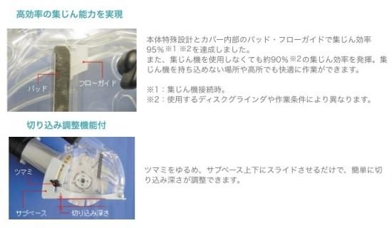 集じん機とのSETすることにより、集じん効率95%をほこります。(作業条件により異なります)