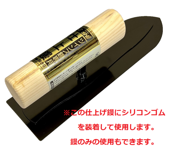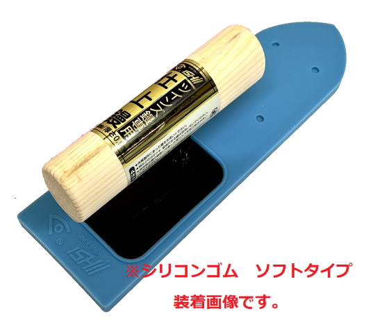 仕上げ鏝にシリコンゴム(ソフト・ハード)を付けるとゴム鏝と使用できます。(脱着時は水にぬらしてください)