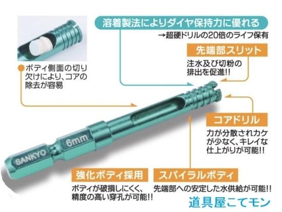 ホーム > タイル・石材カッター切断機(手動・電動)/タイル・石材用工具など > インパクト用タイルドリル(6.35mm六角軸)
