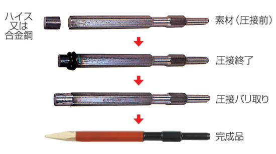 ラクダブルポイントは先端部に弊社独自の特殊合金工具鋼を摩擦圧接により接合してあります。