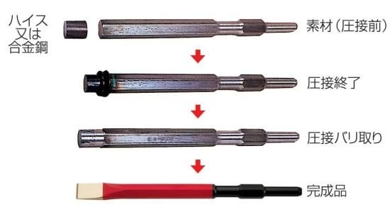 ・ラクダコールドチゼルは先端部に弊社独自の特殊合金工具鋼を摩擦圧接により接合してあります。
