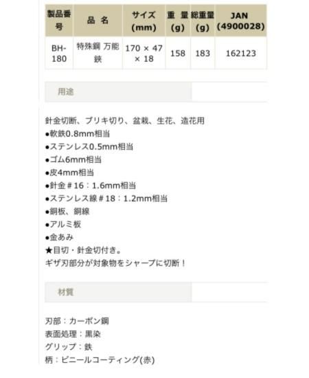 針金切断、ラス切り、ブリキ切り、盆栽、生花、造花用として最適な万能ハサミ!