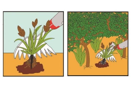 ●立ち木や植え込みの下等狭く手の届きにくい場所での草取りにも便利です。