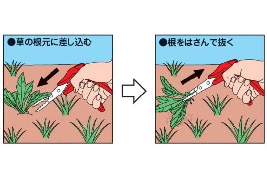 刃先を土に差し込み、根をはさんで根こそぎ抜く事が出来まる 草抜くぞうです。