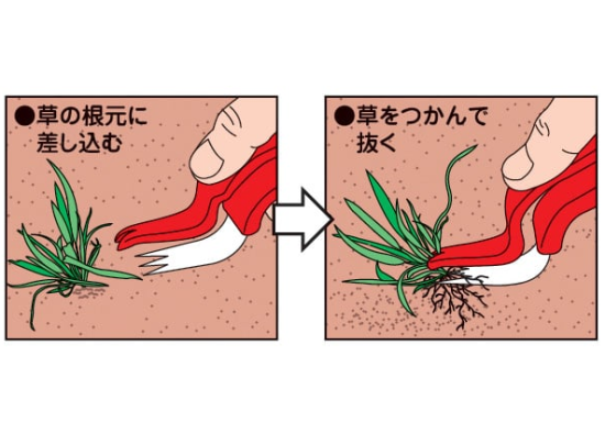 ●草を指でつかみ取る感覚で草取りが出来ます。