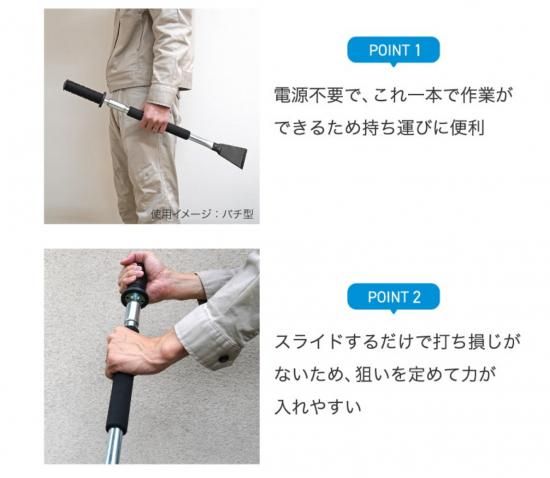 ・先端硬度HRC40程度でアスファルトやコンクリートも斫れる。
