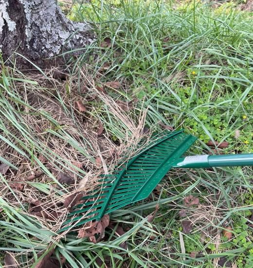 先爪が柔らかい為、凸凹している箇所の落ち葉などのかき寄せなどに大変便利です。