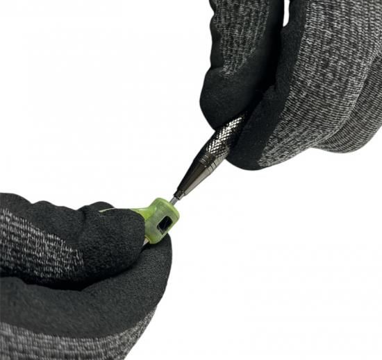 さらに、業界に先駆けてワンタッチクリップを採用しているため、厚い腰袋に手軽に収納できる点も魅力。
